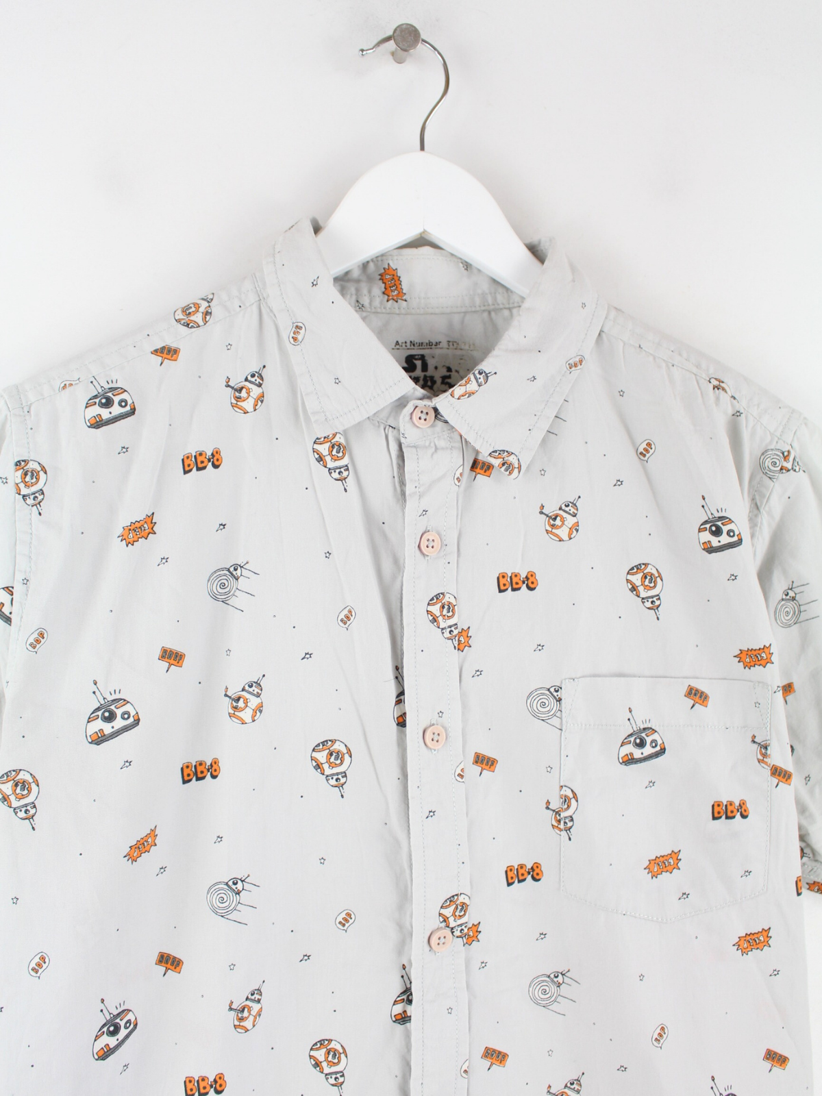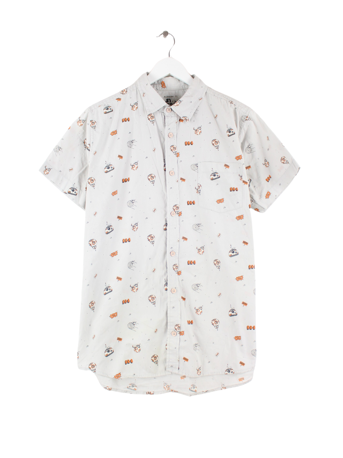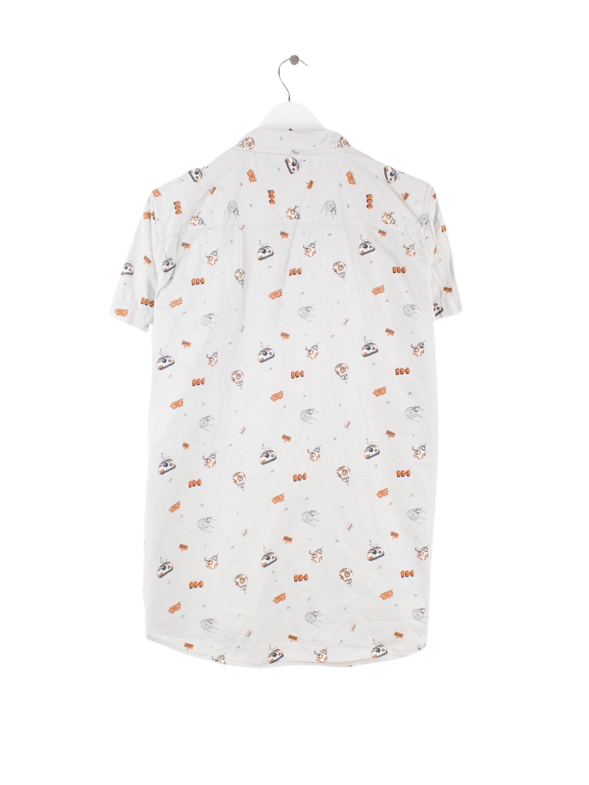 Weißes Vintage Freizeit Hemd in Größe L. Es ist aus Baumwolle und in sehr gutem Zustand bei uns vorrätig. Mit schönem Wars Print.