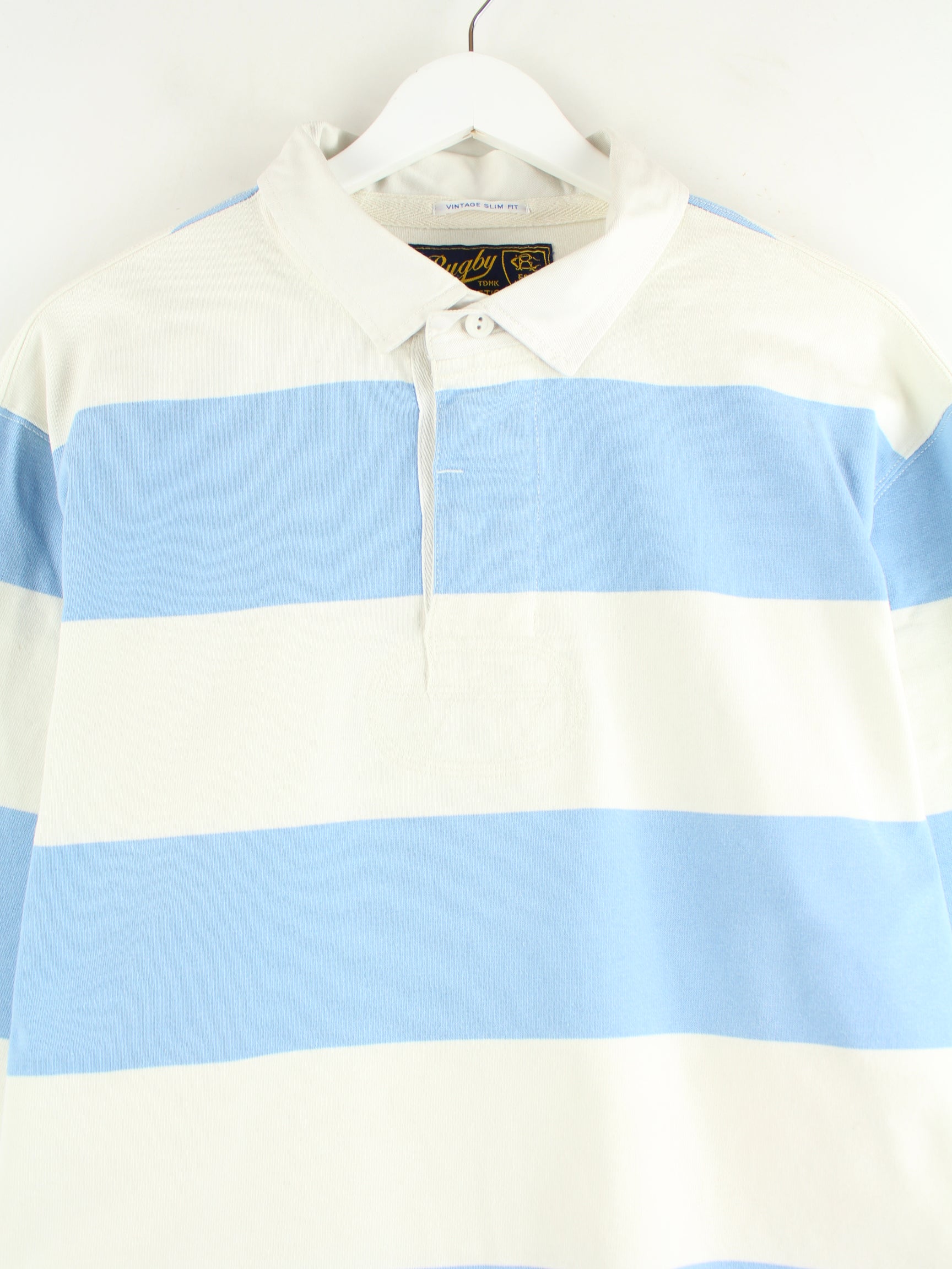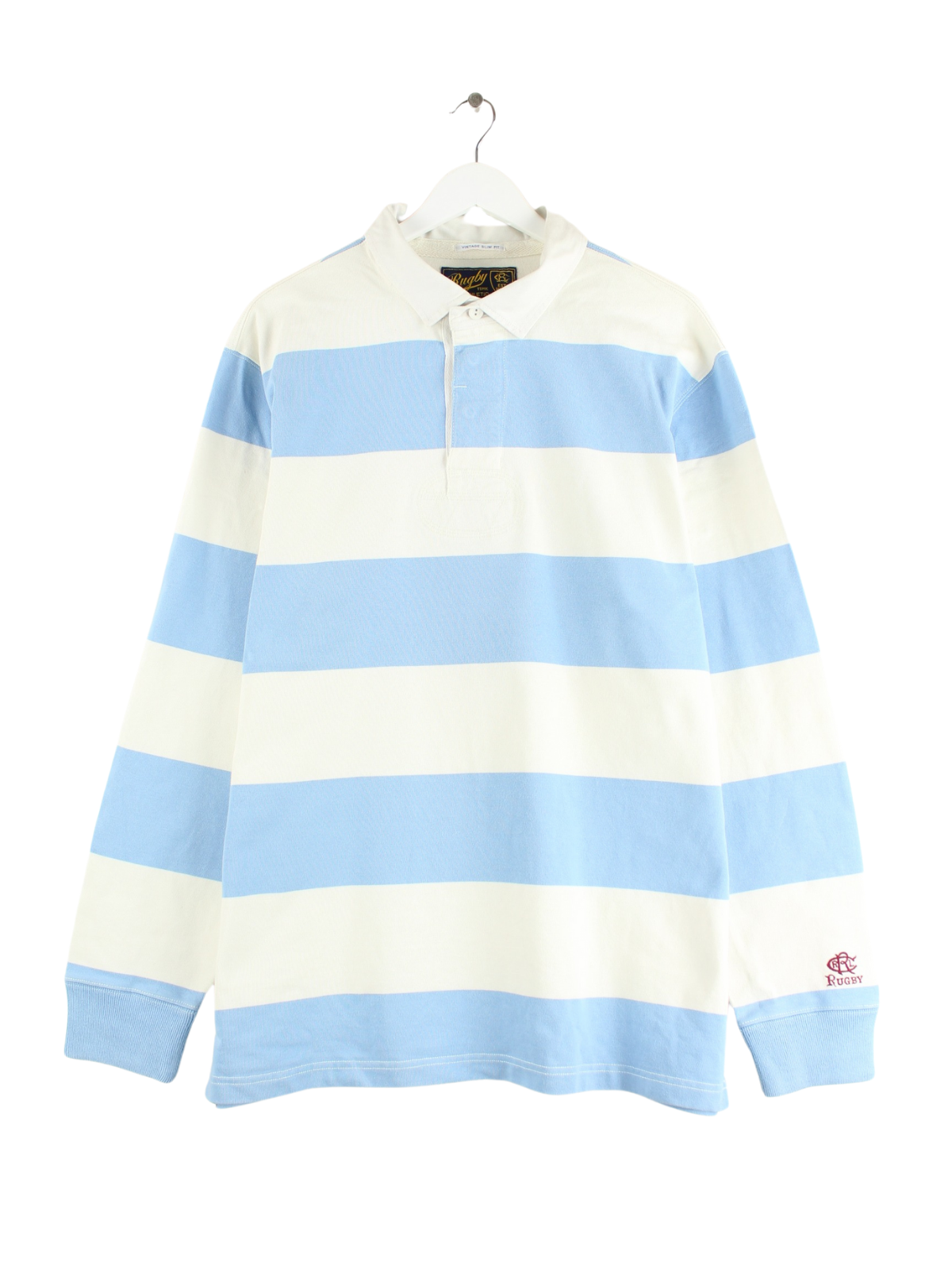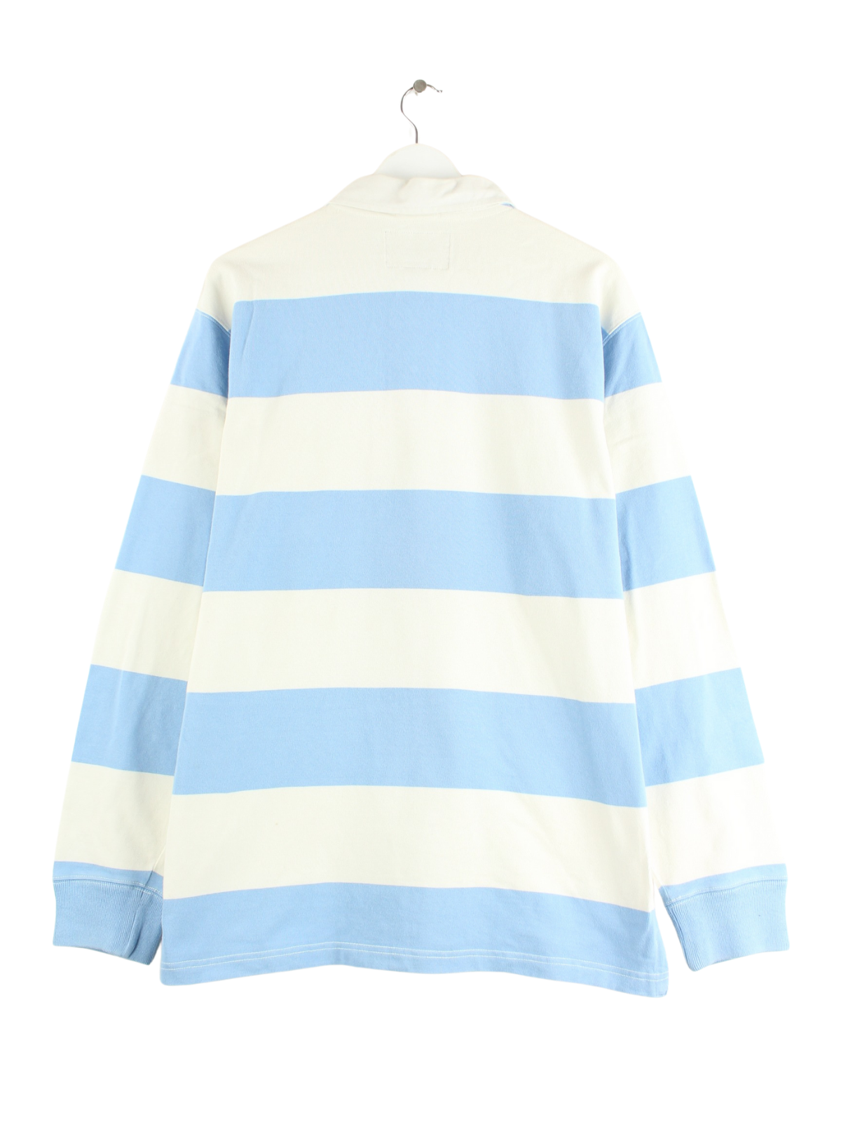 Vintage Striped Rugby Langarm Polo Blau / Weiß XXL