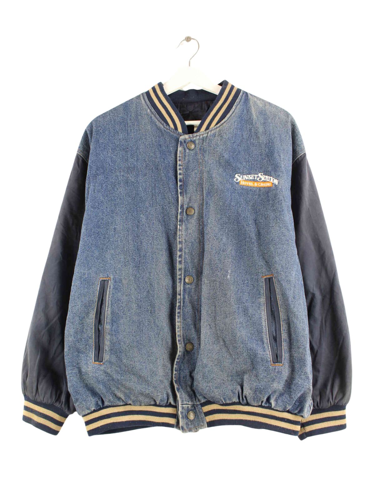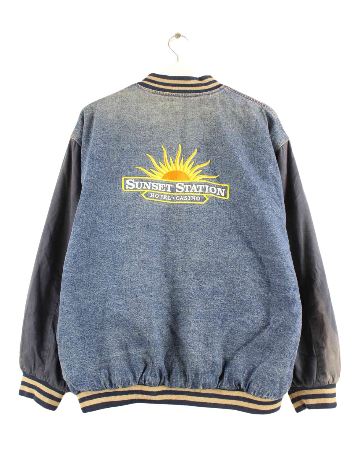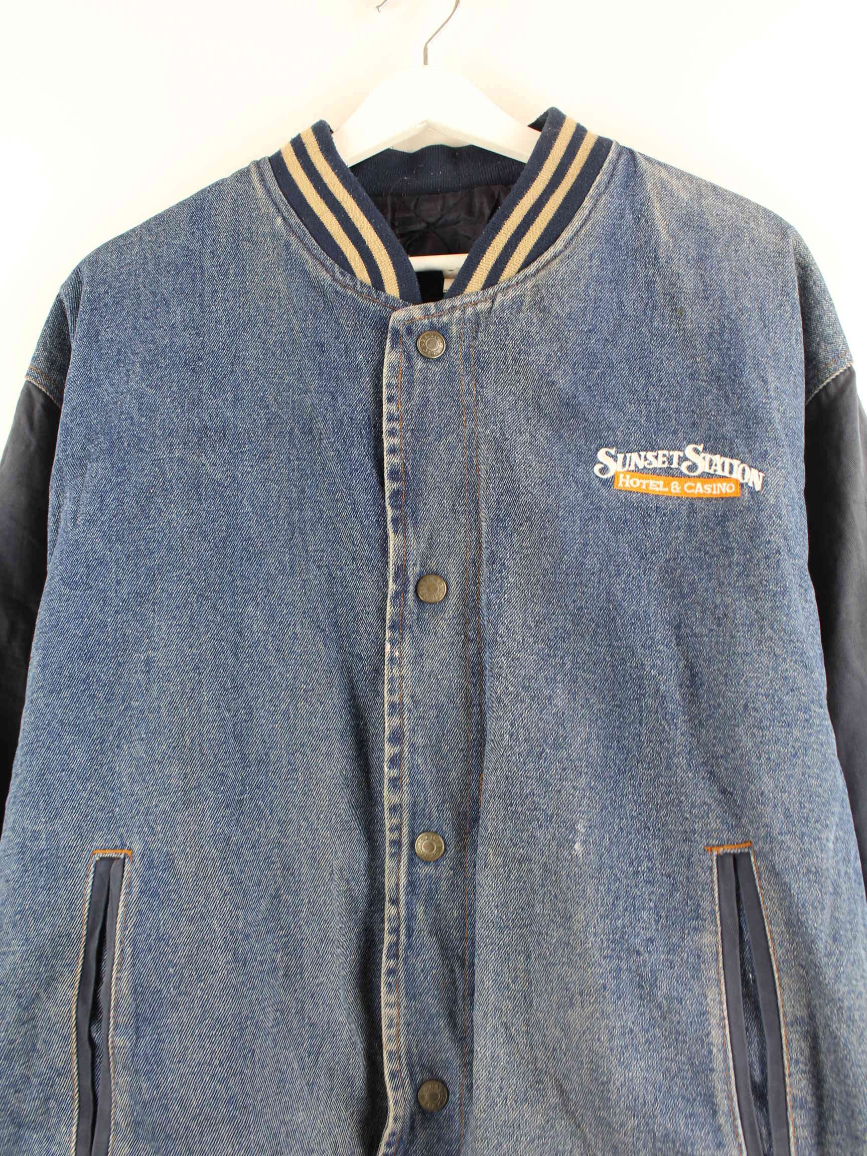 Vintage Sunset Station Denim College Jacke Blau L