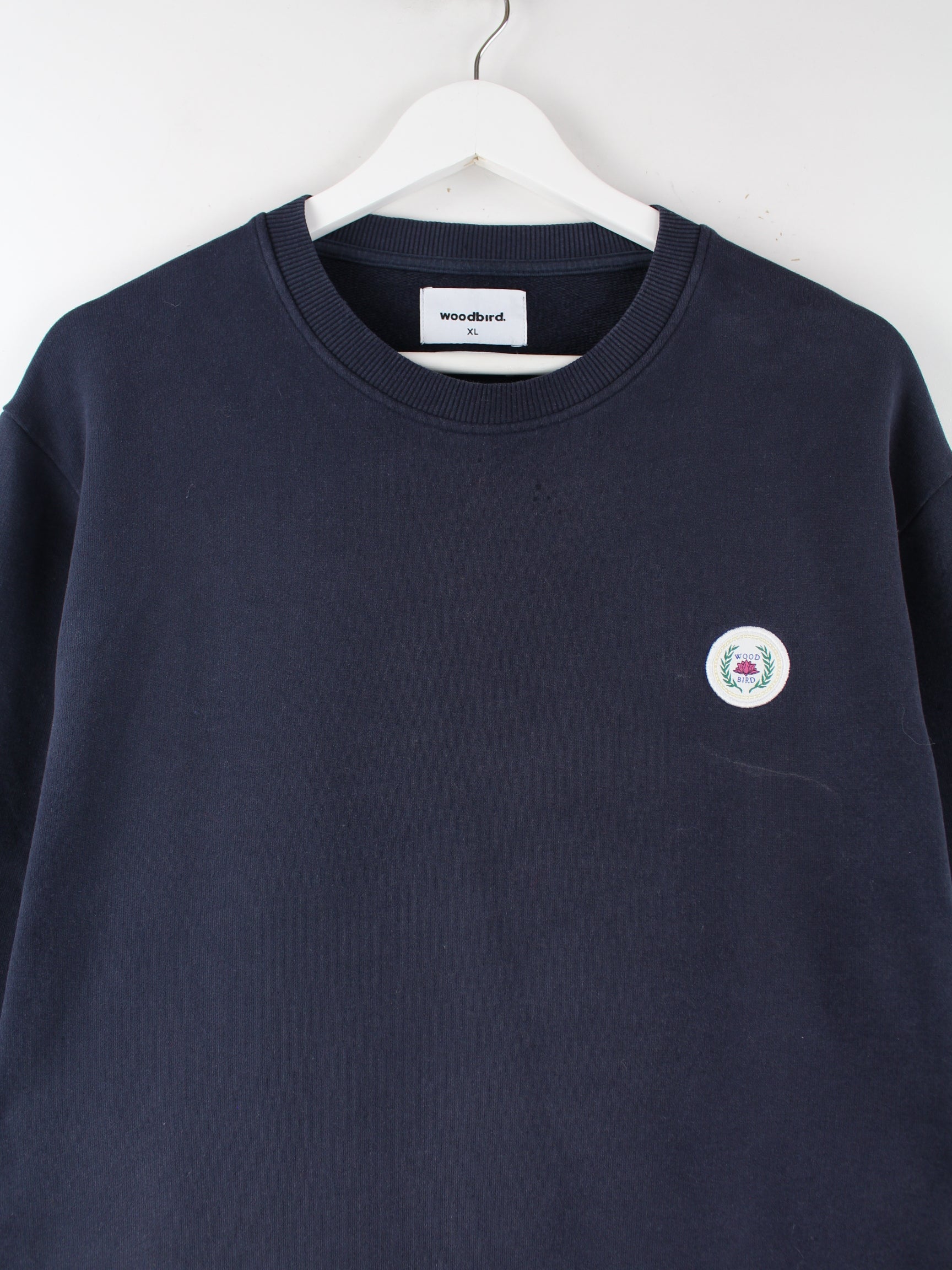 Blauer Vintage Sweater in Größe XL. Er ist aus einer Baumwollmischung gefertigt und in gutem Zustand zu haben.