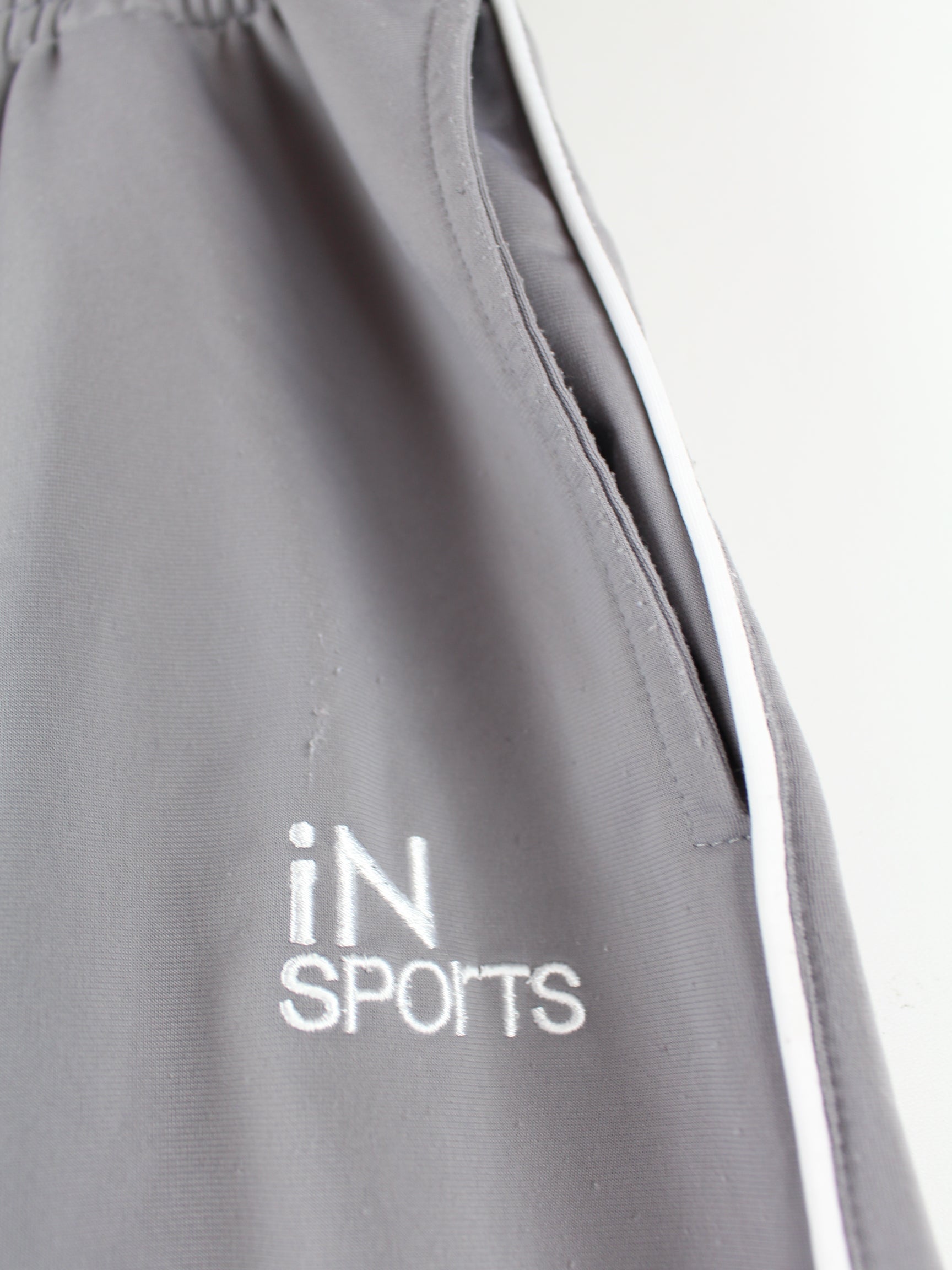 Vintage Track Pants in Größe XL. Sie sind aus Synthetik angefertigt und in Grau zu haben.