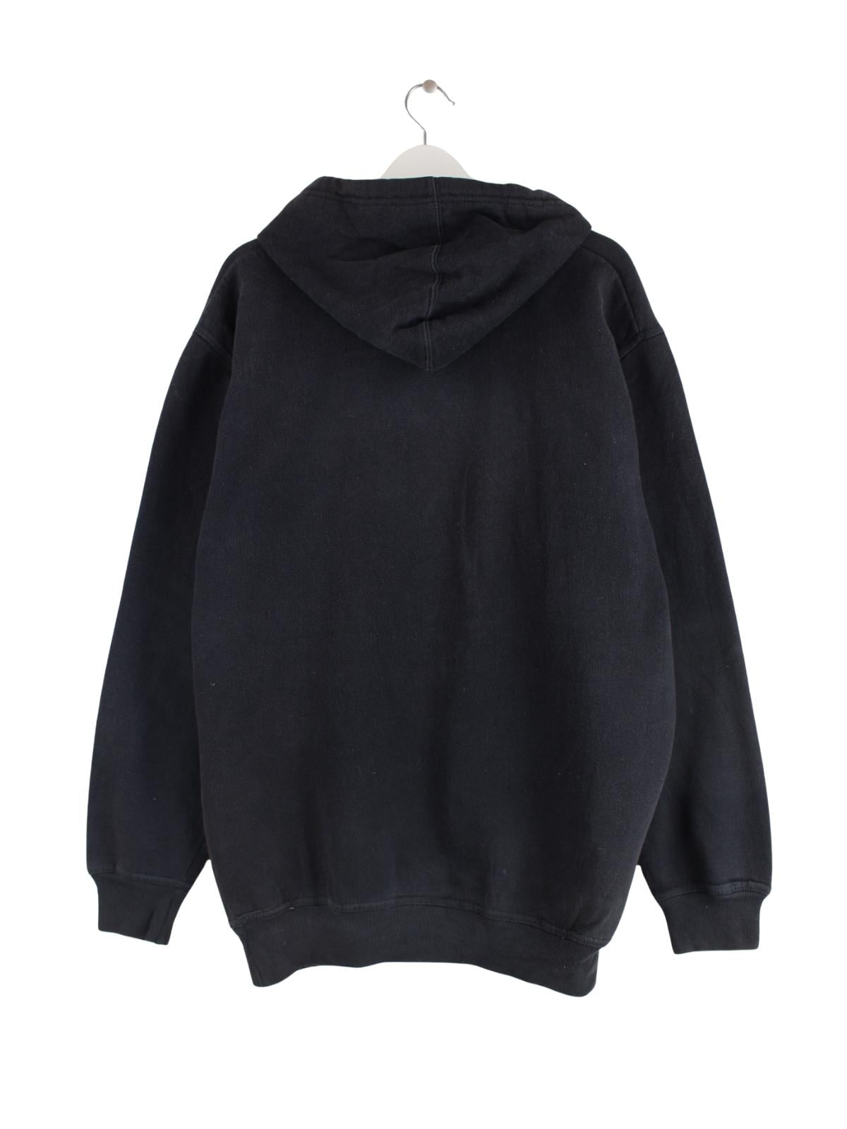 Schwarzer Vintage Hoodie in Größe L. Er ist aus einer Baumwollmischung hergestellt und in gutem Zustand im Bestand.