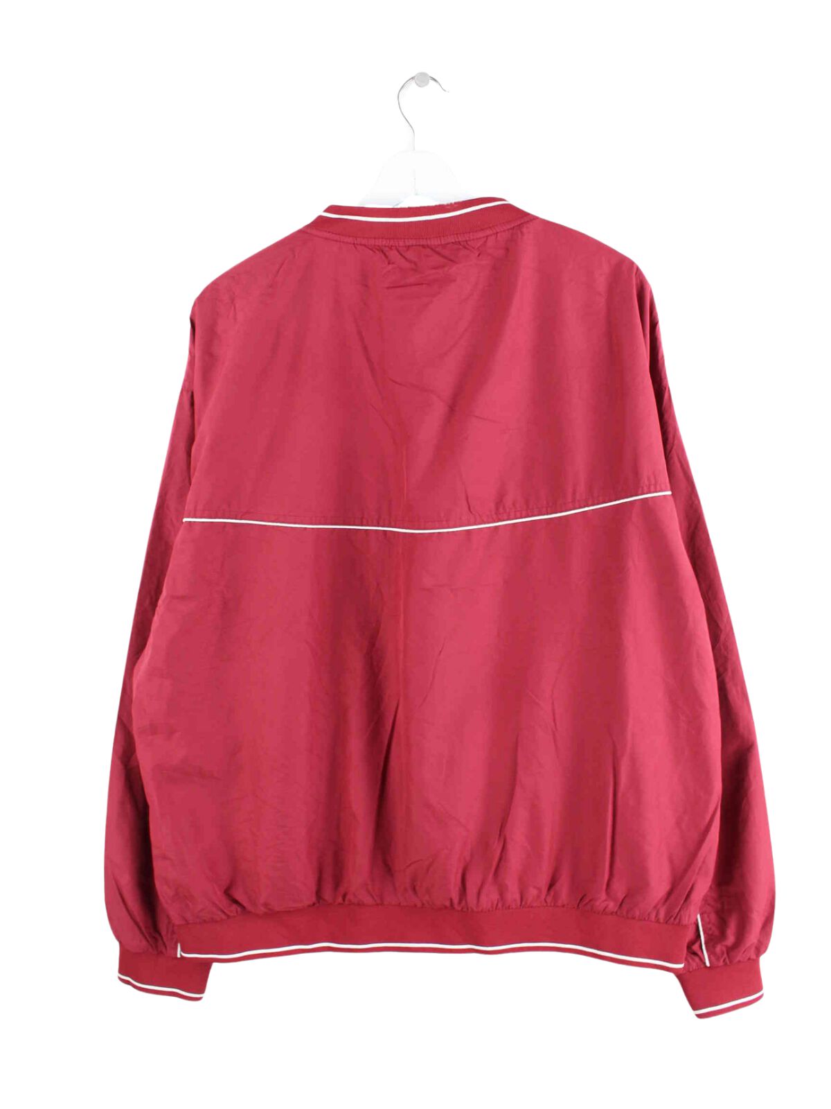 Vintage Sweater in Größe XL. Er ist aus Synthetik gemacht und in Rot bei uns vorrätig.