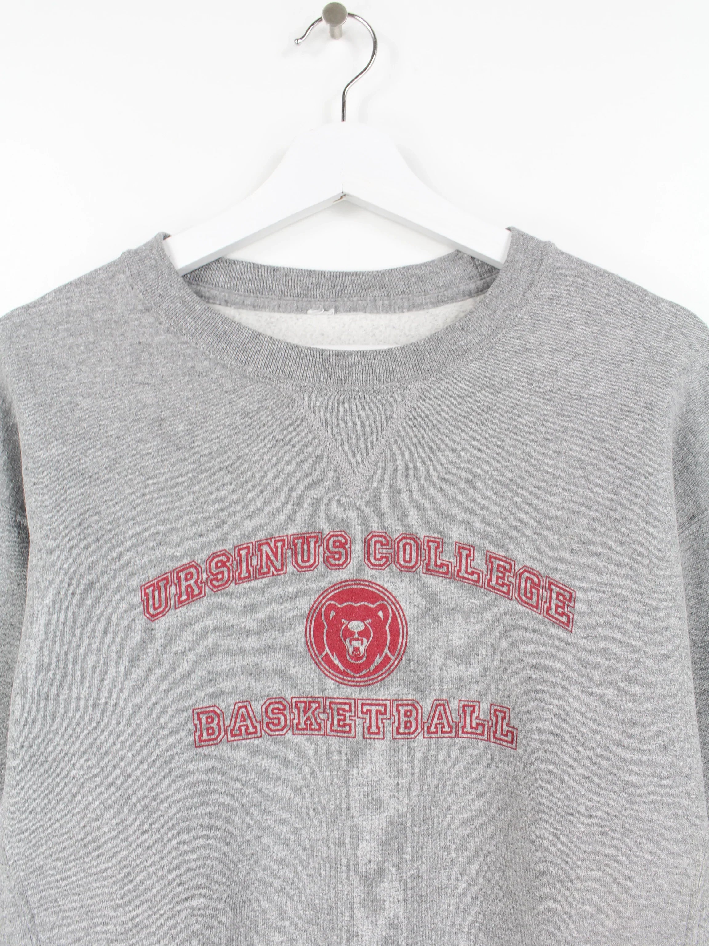 Grauer Sweater mit großem Ursinus College Basketball Print.