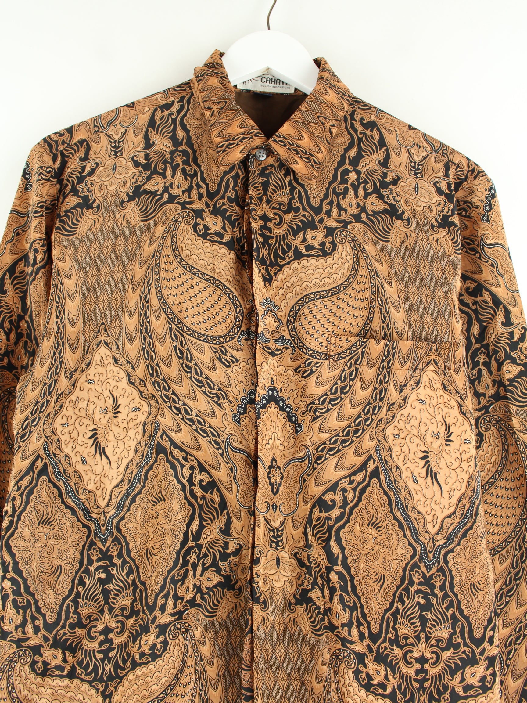 Braunes Vintage Freizeit Hemd aus Anfang der 2000'er in Größe S. Es ist aus einer Baumwollmischung hergestellt und in sehr gutem Zustand lieferbar.