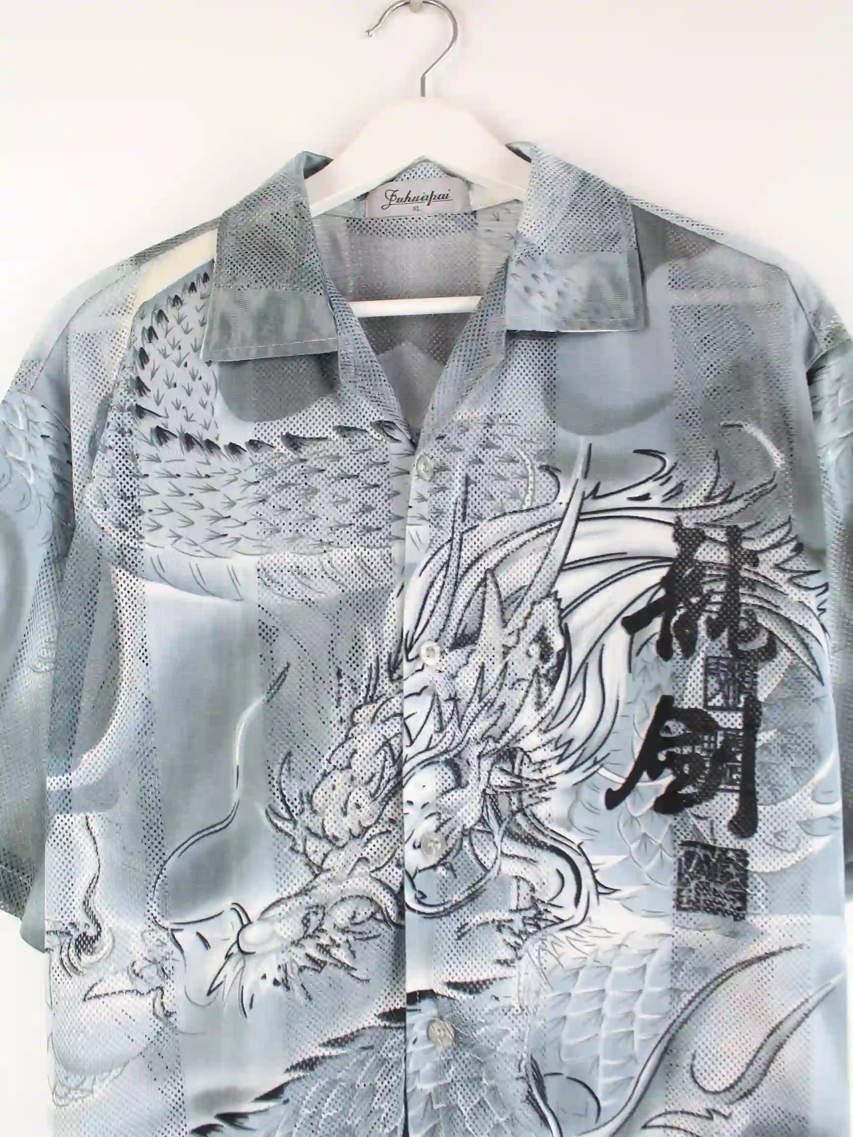 Vintage y2k Dragon Hawaii Hemd Blau XL