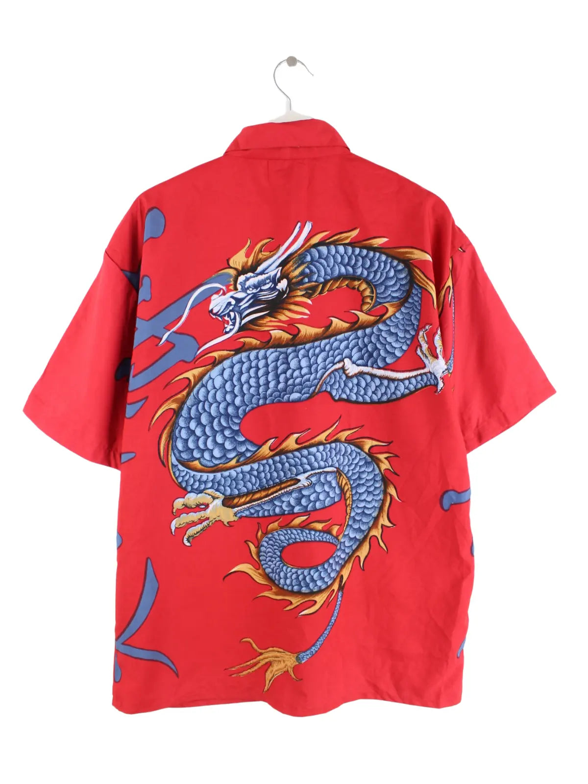Vintage y2k Dragon Kurzarm Hemd Rot L