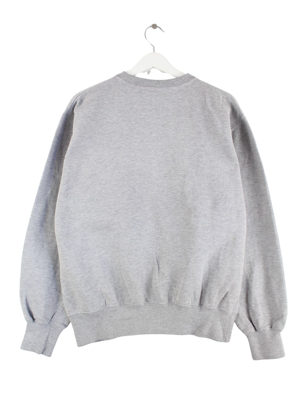Vintage Sweater mit Stickereien in Größe M aus Anfang der 2000'er. Er ist aus einer Baumwollmischung gefertigt und in Grau lieferbar.