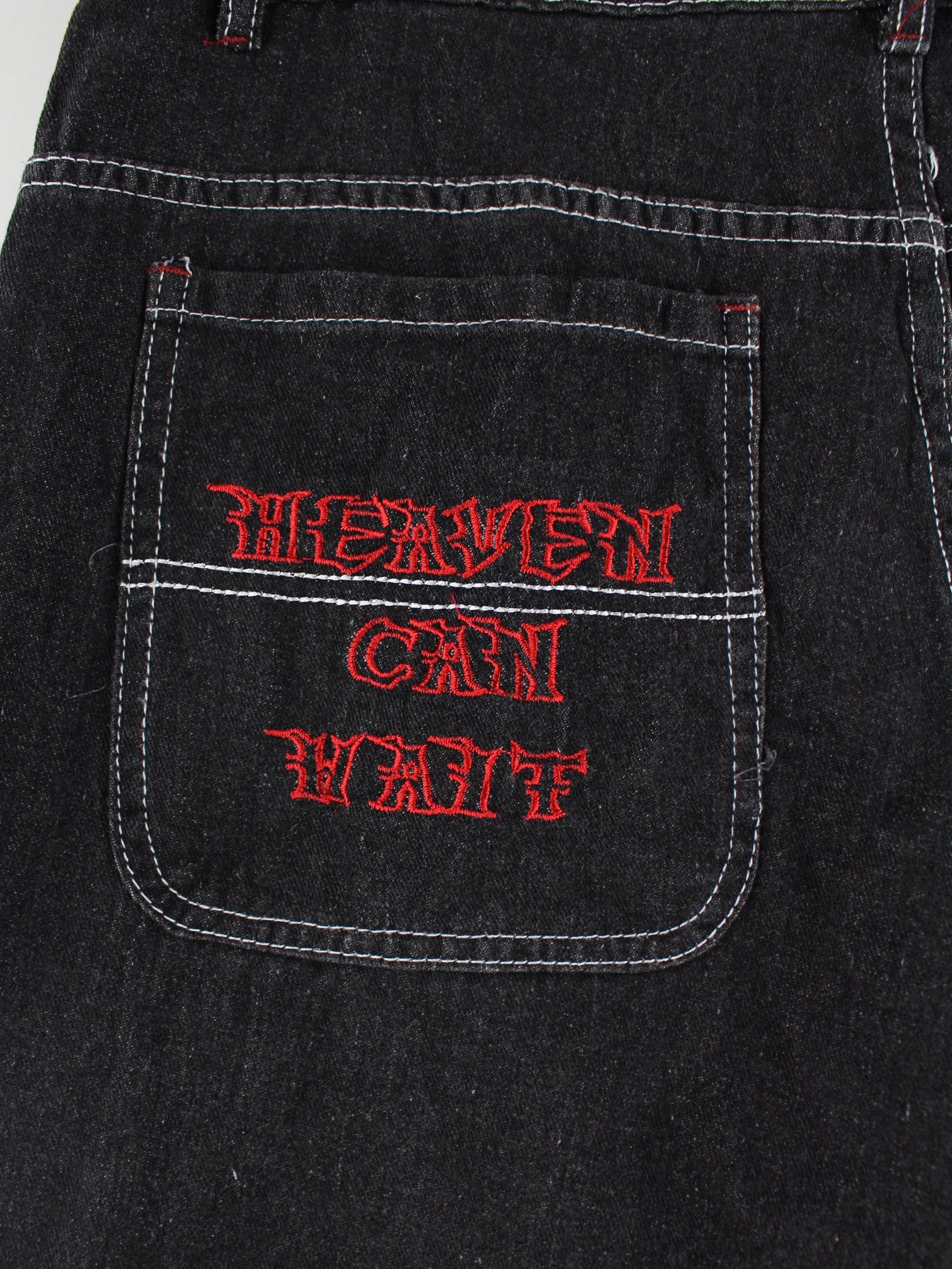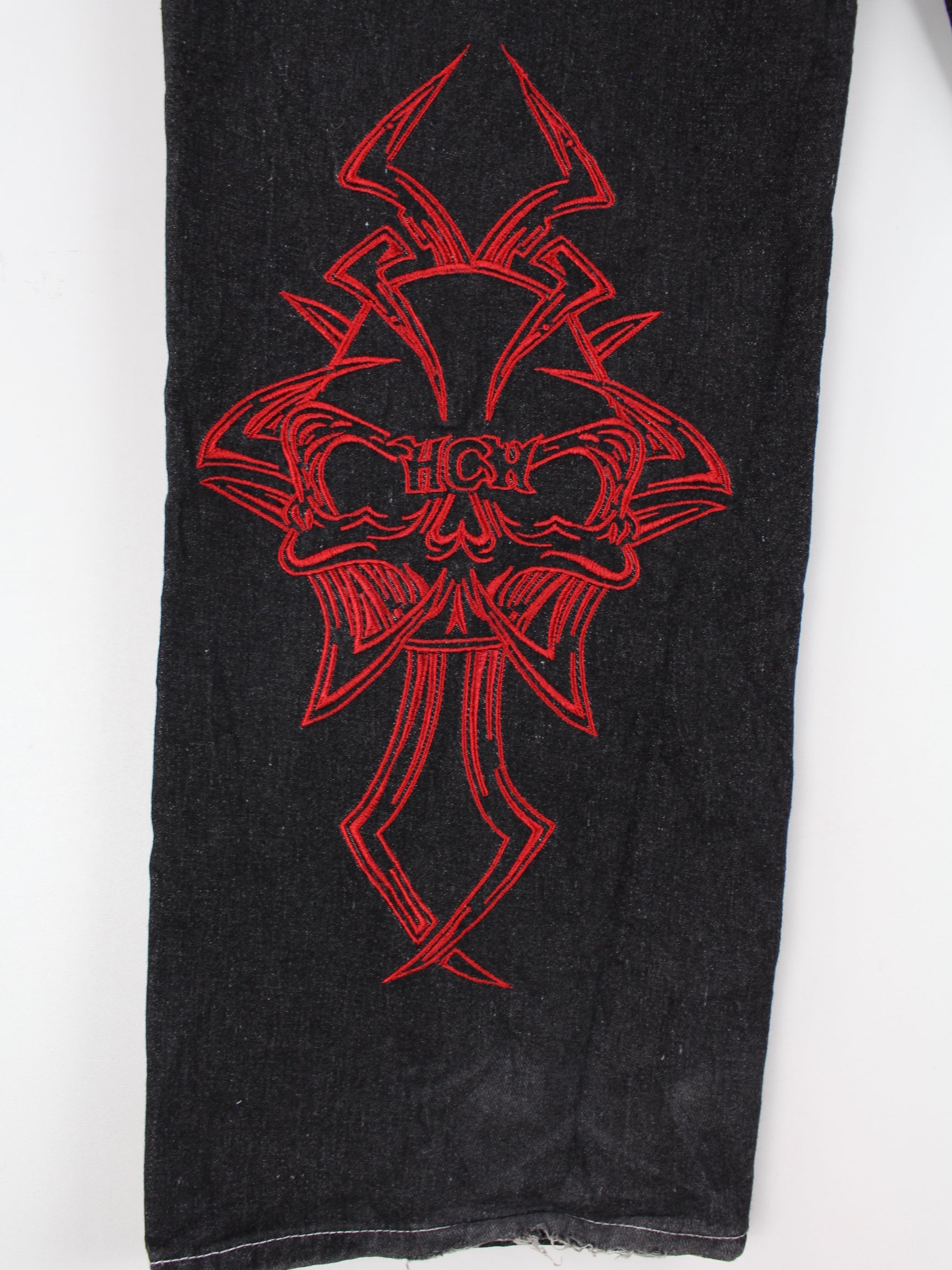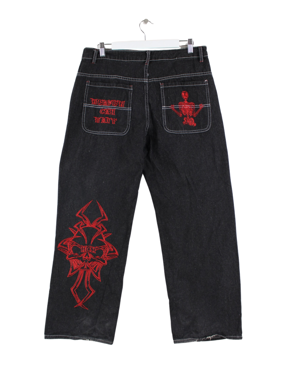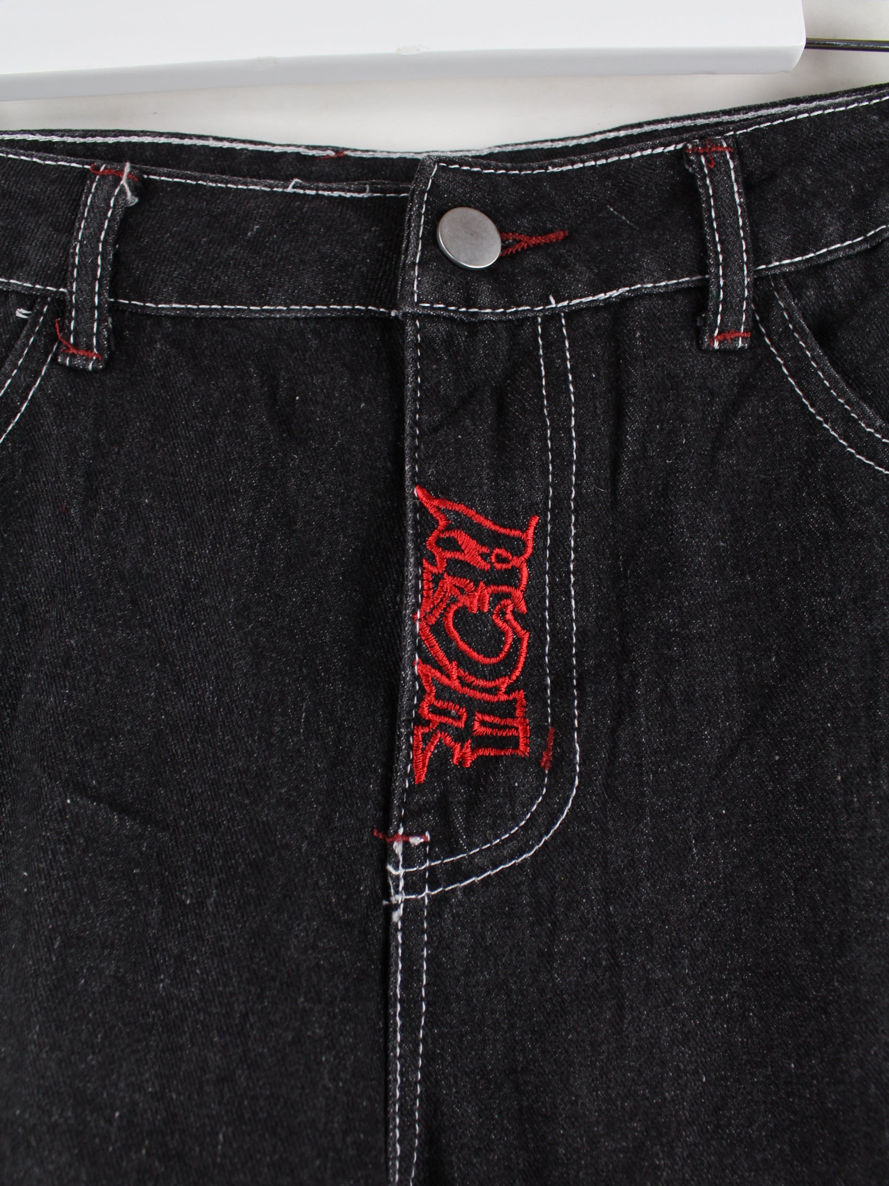 Vintage y2k Embroidered Jeans Schwarz W32 L30