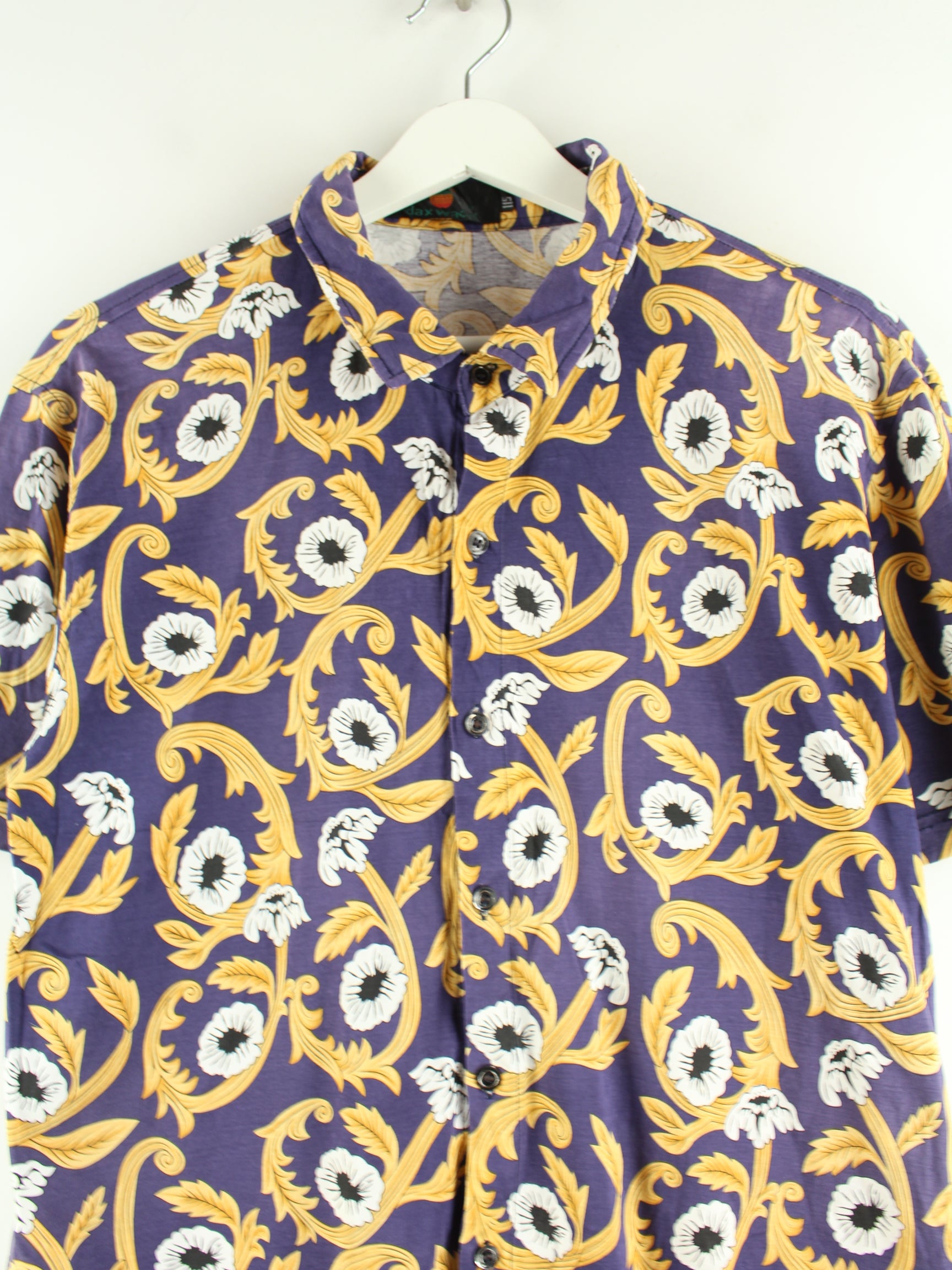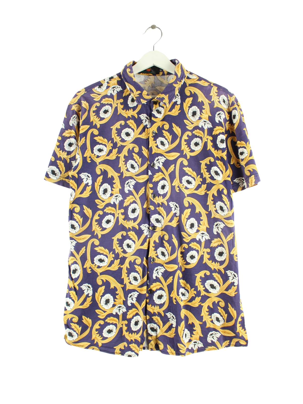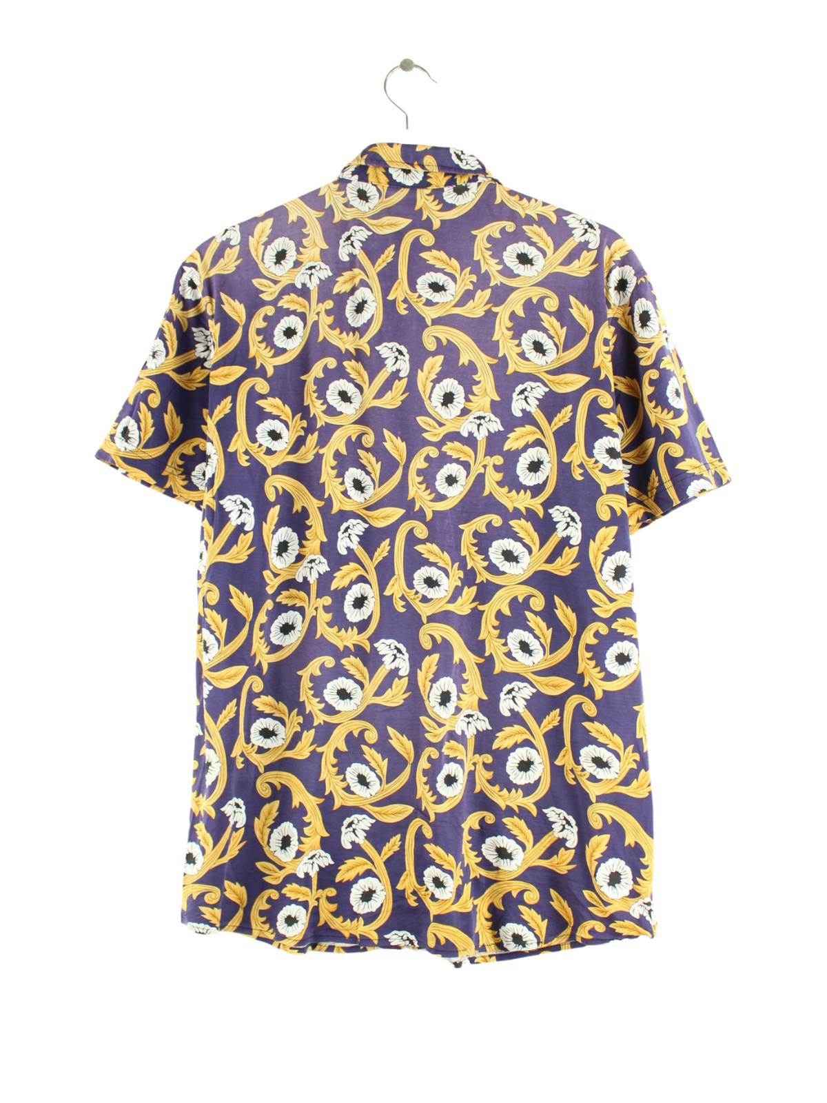 Vintage y2k Pattern Kurzarm Hemd Blau M