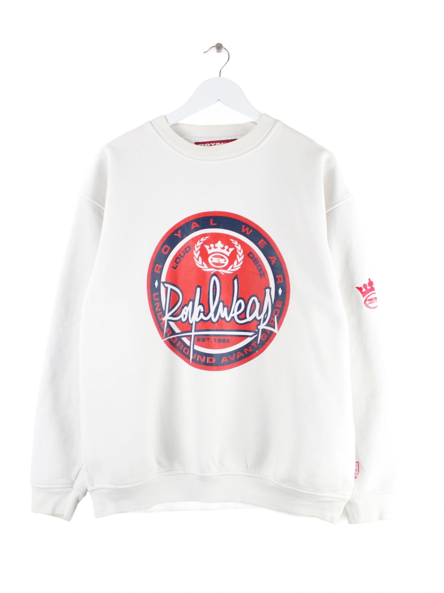 Vintage y2k Royal Wear Print Heavy Sweater Weiß L
