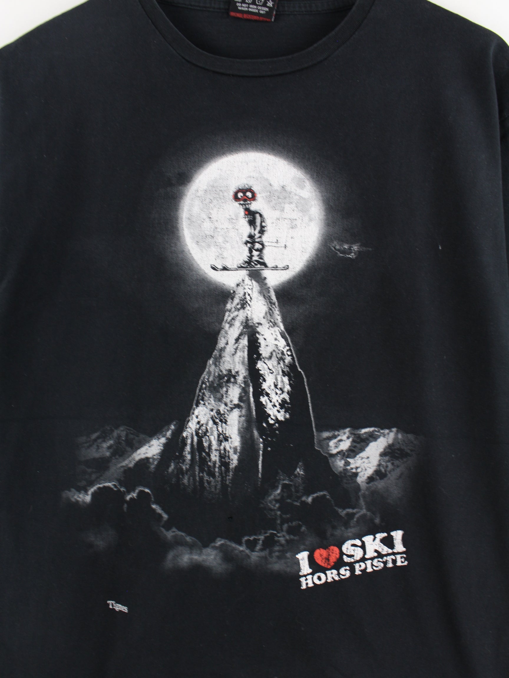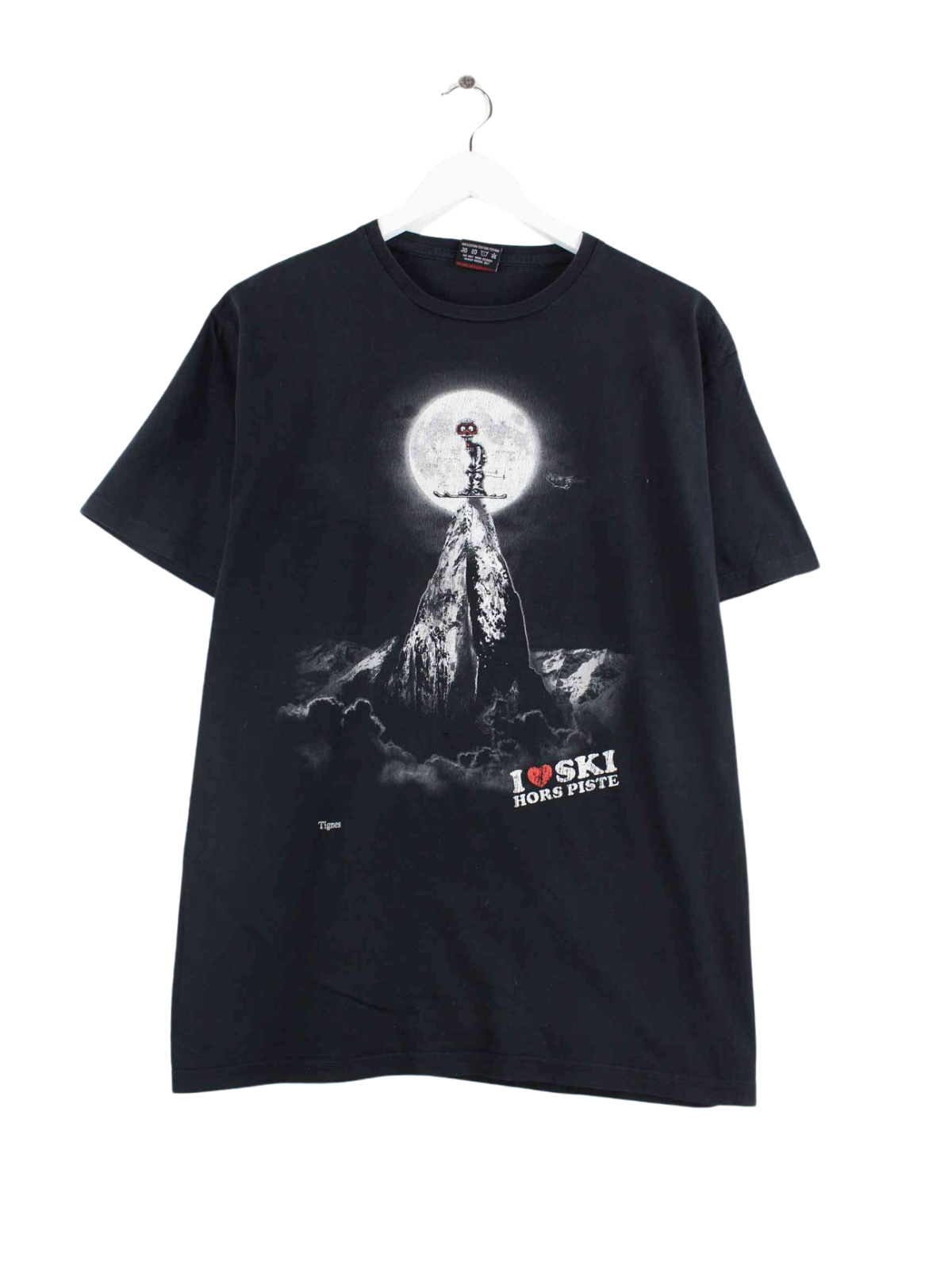 Vintage y2k Ski Print T-Shirt Schwarz L