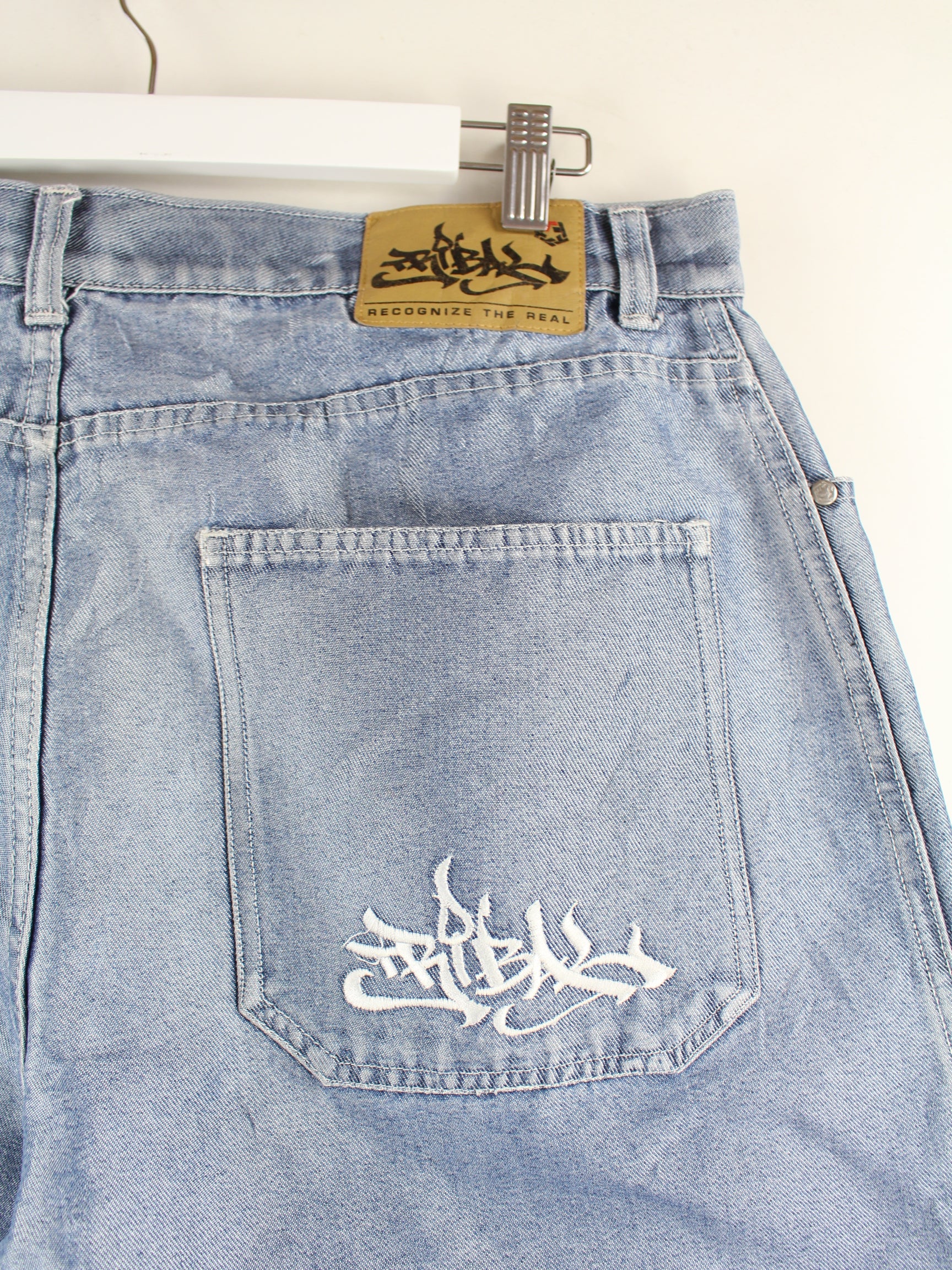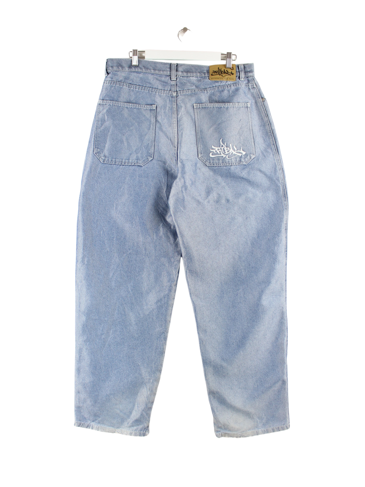 Vintage y2k Tribal Embroidered Baggy Jeans Blau W38 L34