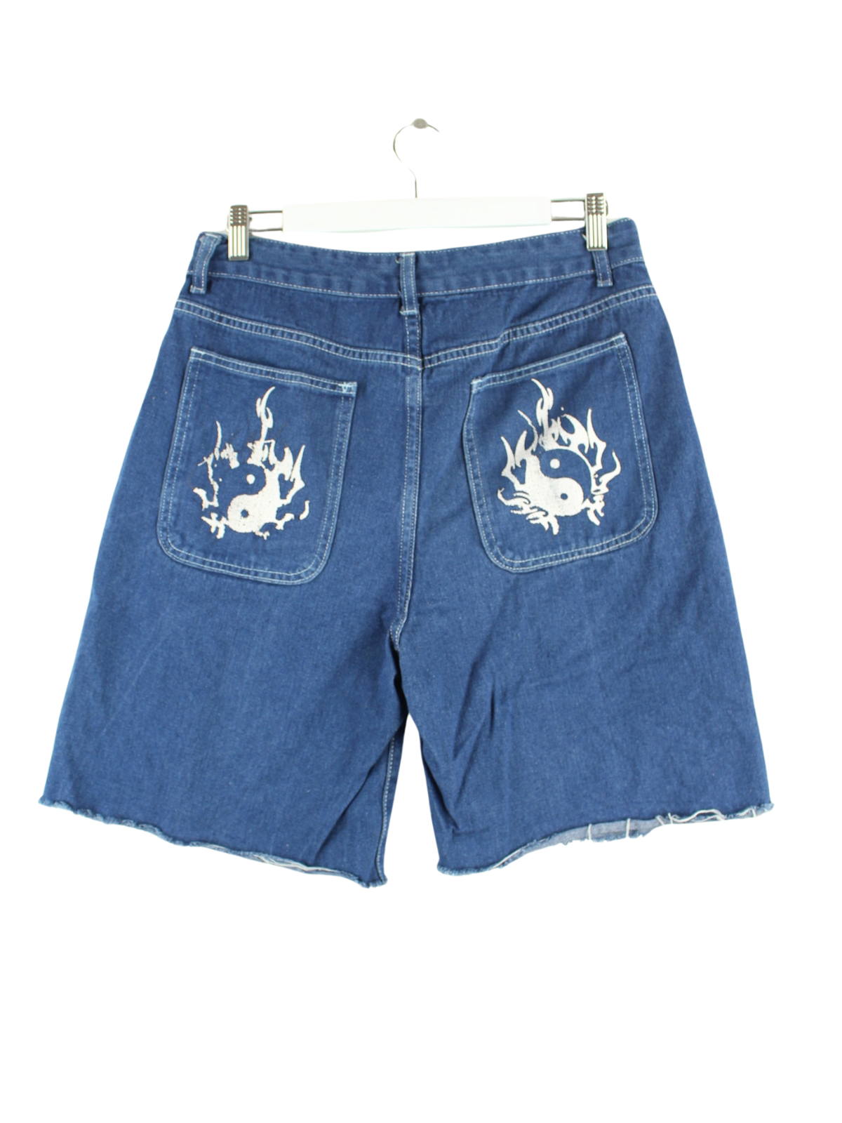 Vintage y2k Ying Yang Print Jorts / Jeans Shorts Blau W28