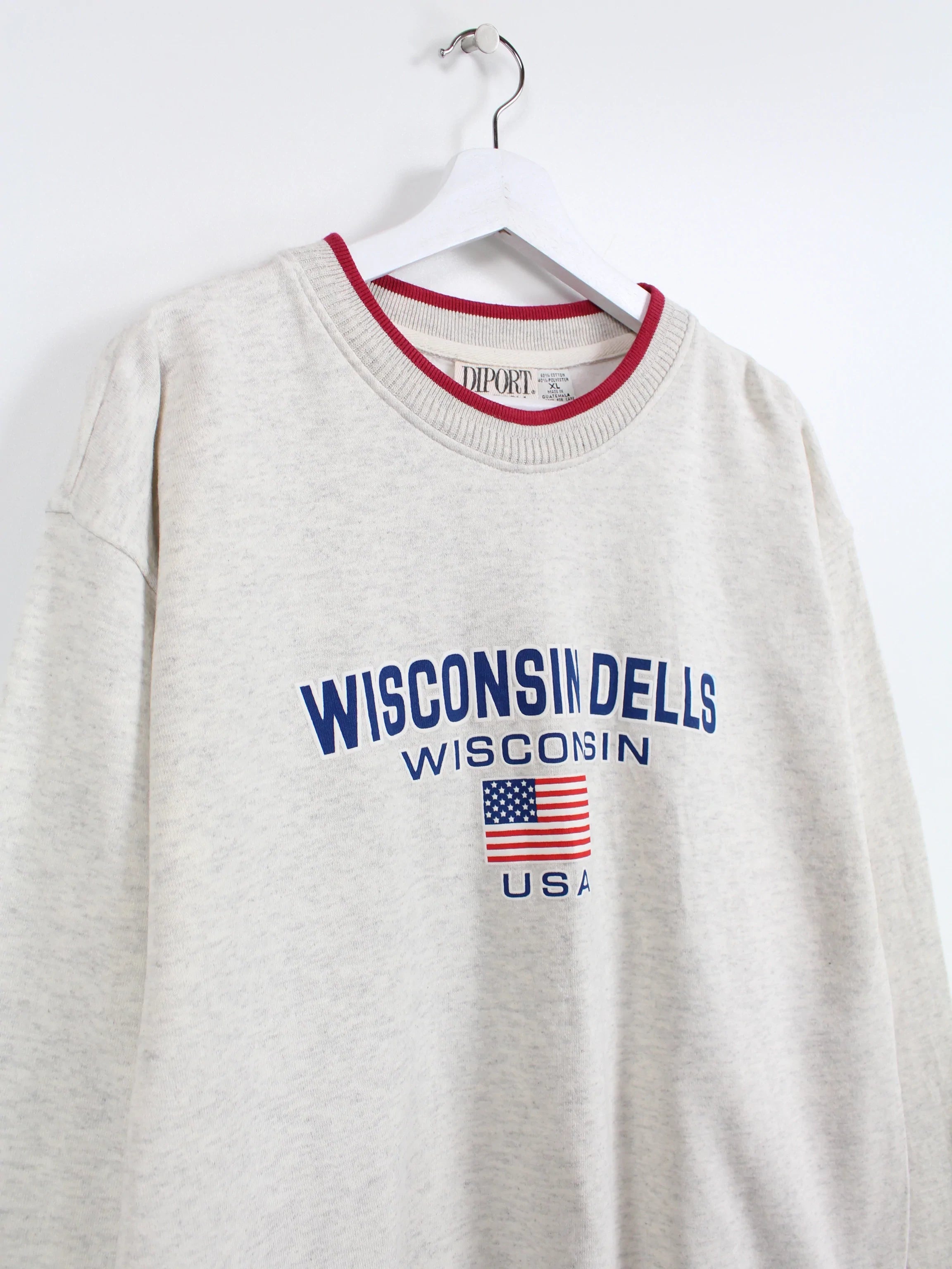 Grauer Sweater der Marke Diport USA, mit großem USA Aufdruck.